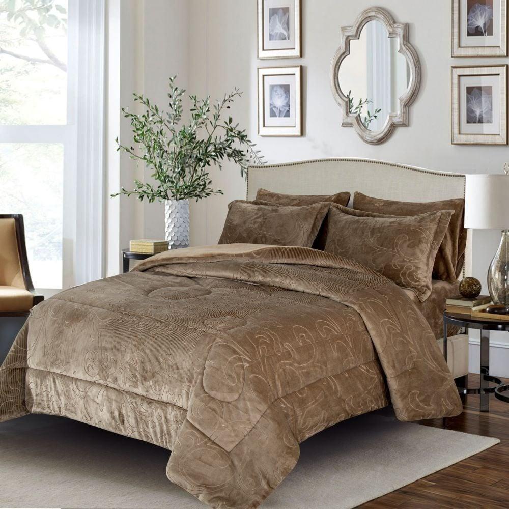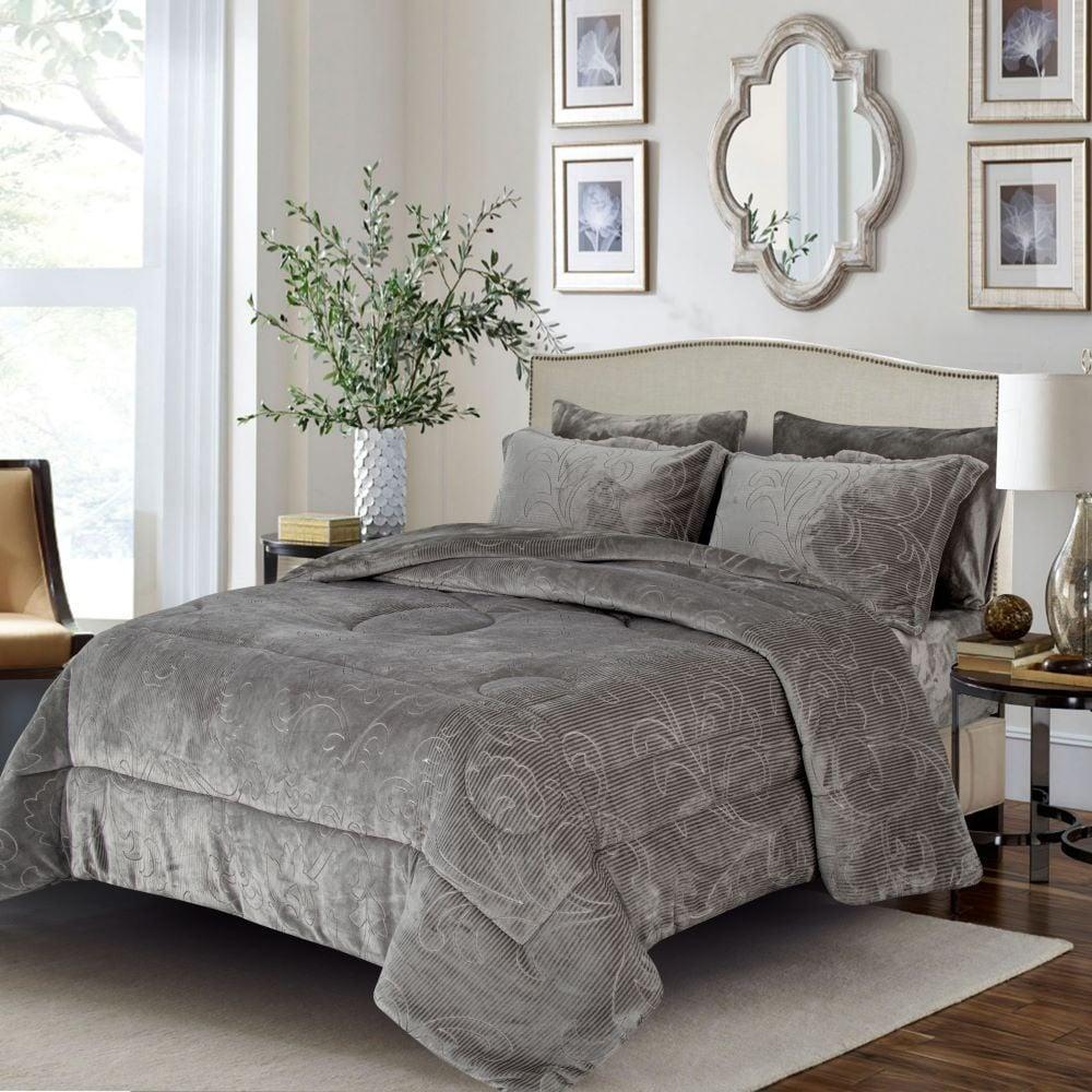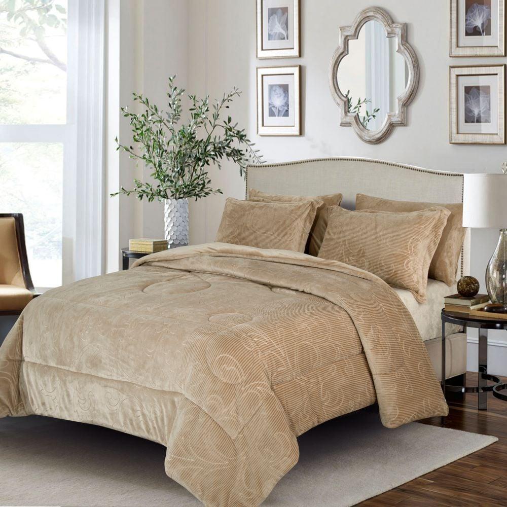 مفرش سوفت شتوي مفرد ونص مخمل 4 قطع ، أنيق وبملمس مخملي ناعم