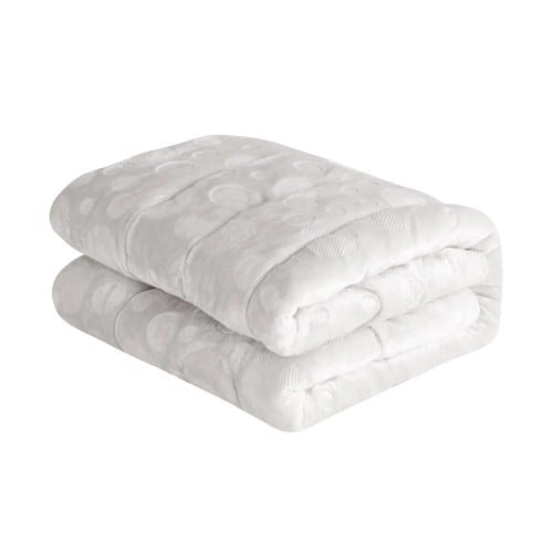 كل قطعة من هذا المفرش مصممة بعناية لتدوم طويلاً مع حشوة بوليستر مايكروفايبر عالية الجودة، لتستمتع بتجربة نوم دافئة ومريحة.